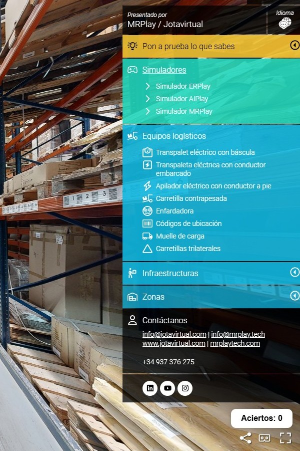 Cada empresa logística es diferente. Por eso, diseñamos soluciones de formación virtual adaptadas a la realidad de cada operación, a sus procesos y a sus equipos. En colaboración con MRPlay, integramos simuladores interactivos y contenidos